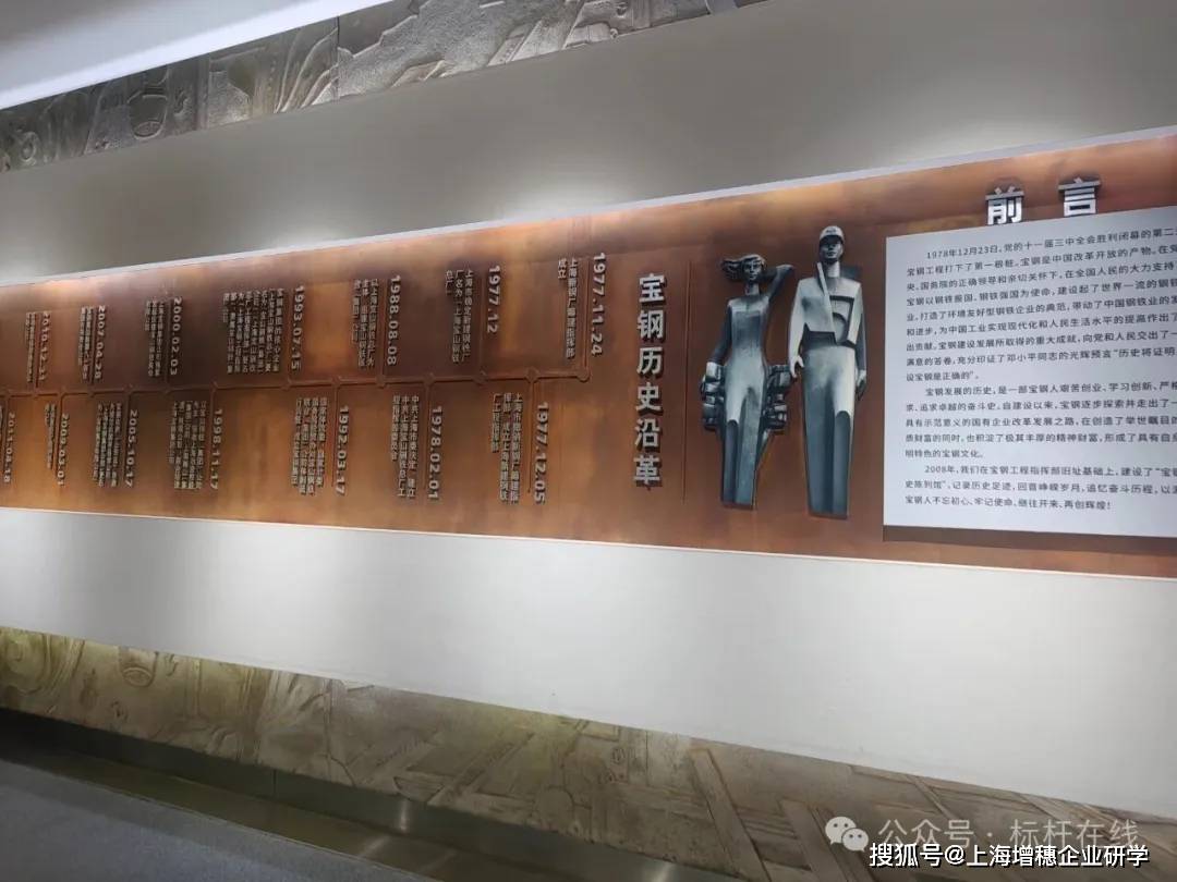 展厅内,通过时间轴清晰呈现了宝武从1978年宝钢奠基,到2016年与武钢重组,再到如今成为全球粗钢产量第一、高端钢材市占率领先的行业龙头的发展脉络。